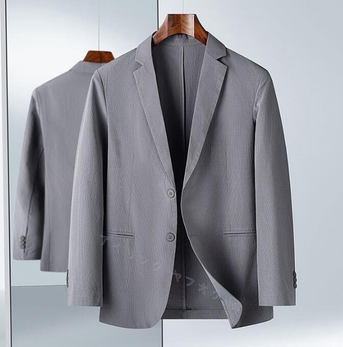 > ☆新品テーラードジャケット ビジネスジャケット 夏薄めストレッチ メンズ ブルゾン ブレザー ダークグレー サイズ選択可
