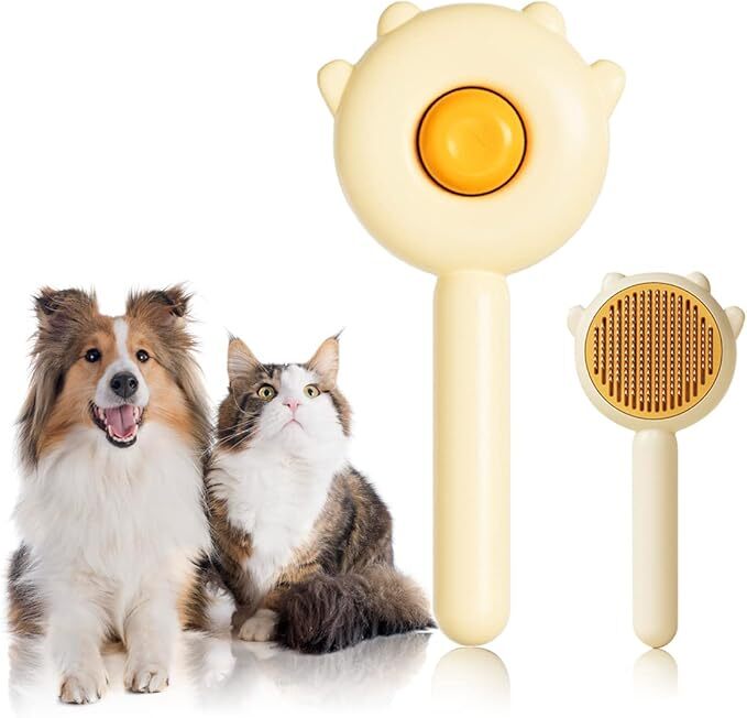 - ペットブラシ 猫 ブラシ 犬 ブラシ 猫用ブラシ スリッカーブラシ ペット用ブラシ ワンプッシュ式 マッサージ 丸洗い可能 犬猫通用 (Yellow)
