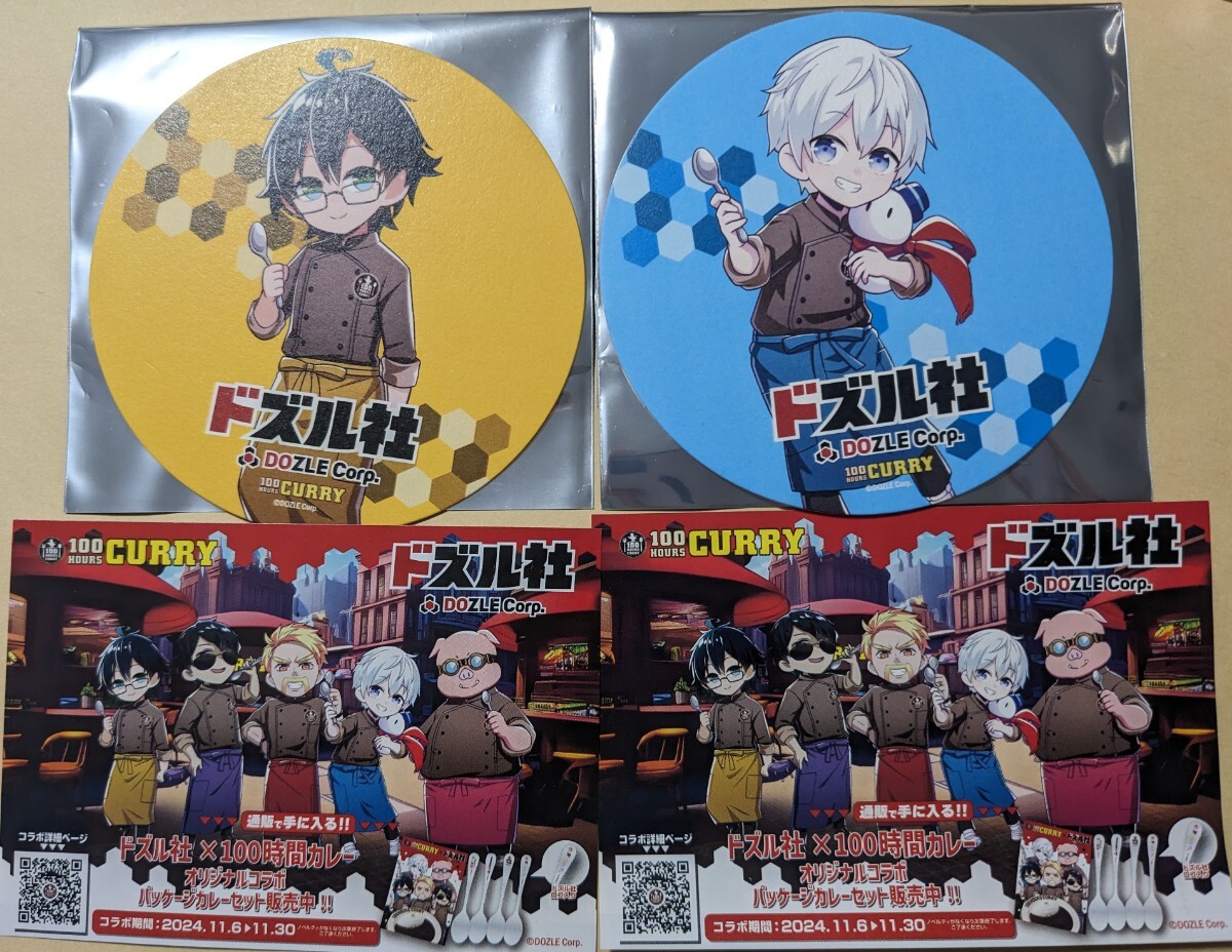 - 非売品 ドズル社 100時間カレー コラボ オリジナル コースター おんりー おらふくん 2種セット おまけチラシ2枚 描き下ろし