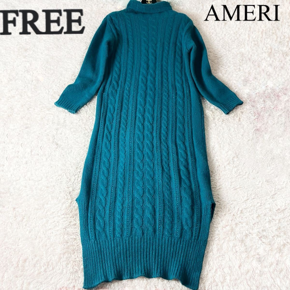 - AMERIVINTAGE アメリヴィンテージ ウール アンゴラ ケーブルニット ニットワンピース ロングワンピース ハイネック グリーン ブルー フリー