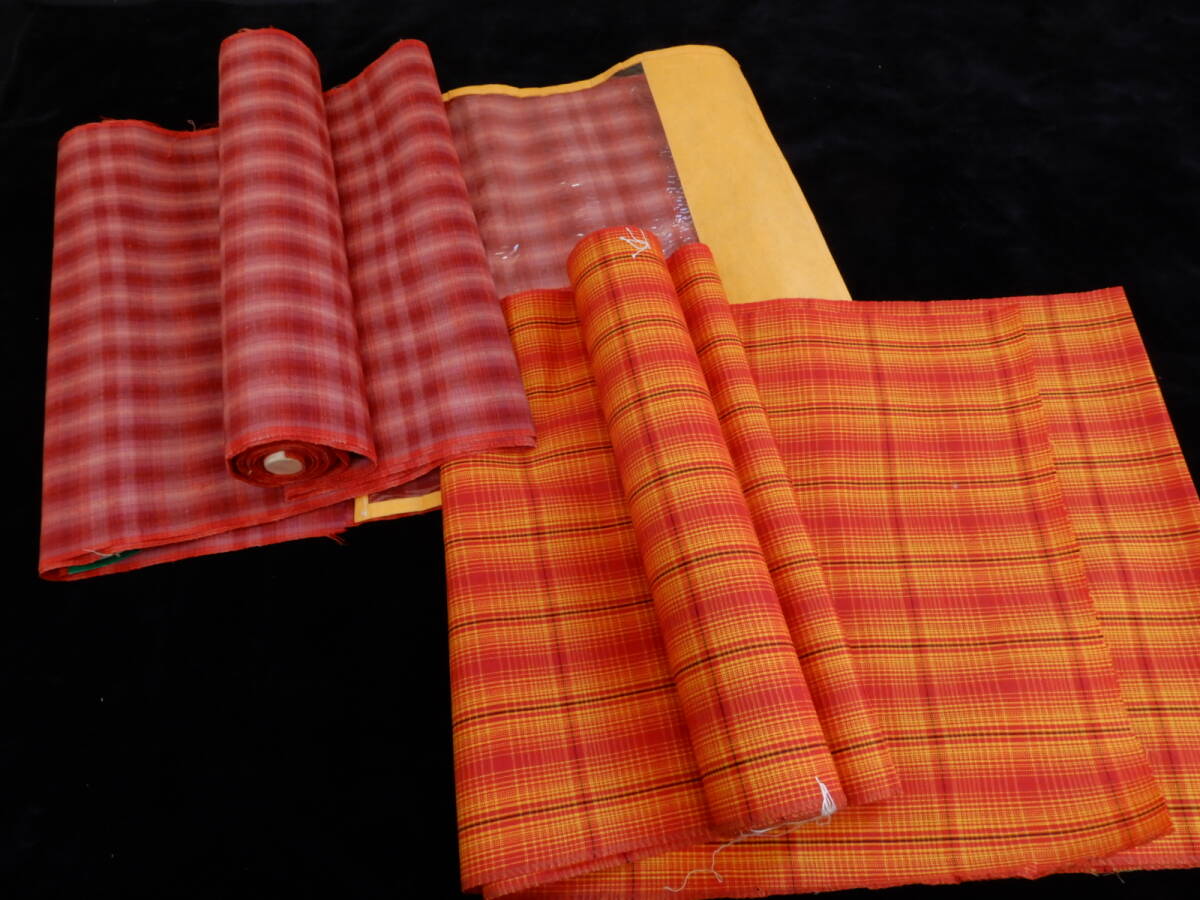- <銀の斧>ウールの反物・2反まとめて・オレンジ・赤色・チェック柄