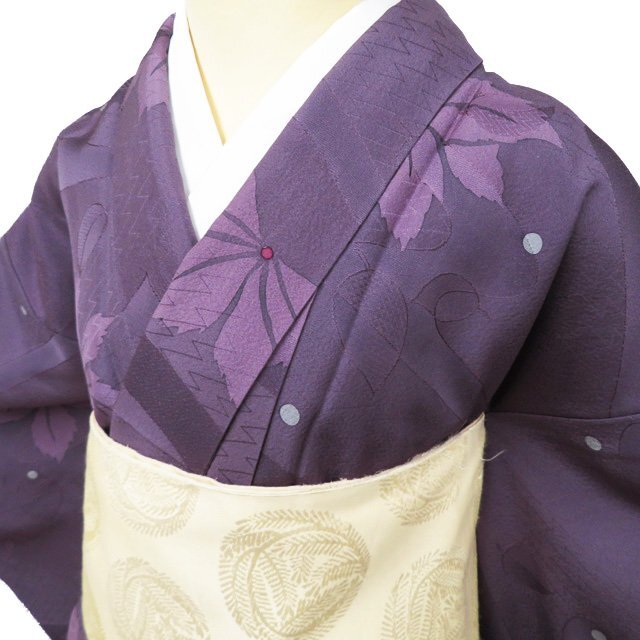 > 小紋 着物 中古 正絹 袷 カジュアル 流水に花模様 地模様 葡萄鼠色 多色 身丈160cm 裄64.5cm M きもの北條 A1115-1