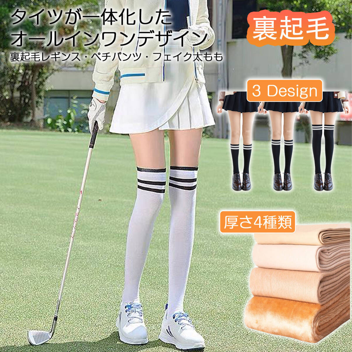 > 【偽透肉ストッキング】裏起毛 ゴルフ ストッキング レギンス 暖かい 秋冬 タイツ レギンスパンツ フェイク ニーハイ風ストッキング 210D