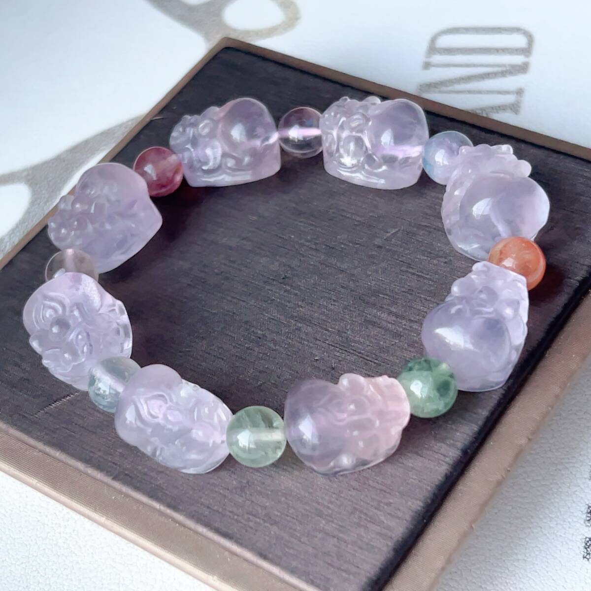 - ◇フローライト◇螢石◇貔貅(ヒキュウ)形 ◇ブレスレット◇パワーストーン◇天然石◇巾着袋付き◇プレゼントにも033B11181