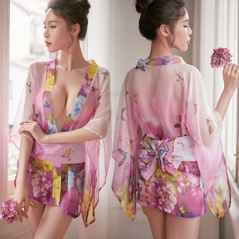 - セクシーランジェリーセット コスプレ衣装 ベビードール 浴衣 着物 ロリータ 部屋着 レディース ルームウェア ピンク