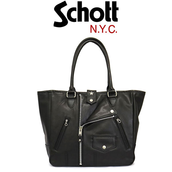 - Schott (ショット) 4976008 LEATHER RIDERS TOTE BAG レザー ライダース トートバッグ 010 BLACK