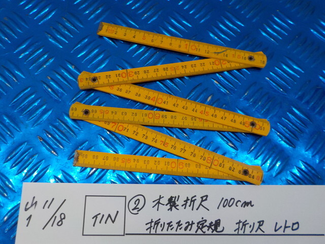 - TIN●〇(2)木製折尺 100cm 折りたたみ定規 折り尺 レトロ 6-11/18(か)