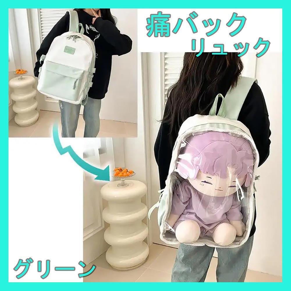 - 痛バッグ 見せバッグ 魅せ リュック 透明 クリア 推し活 バック グリーン 薄い 緑