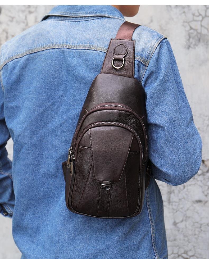 - メンズ 本革 大容量 ワンショルダーバッグ 7.9インチ iPad対応 多機能 斜め掛けバッグ 自転車 カジュアル 鞄 コーヒー DLY629