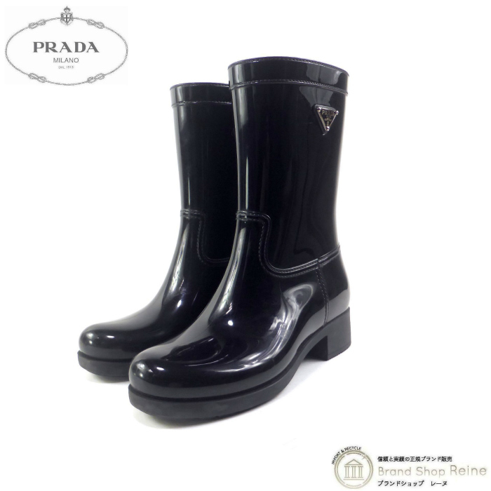 - プラダ (PRADA) プラダスポーツ トライアングルロゴ レインブーツ シューズ 3U5619 靴 #36 ブラック(中古)