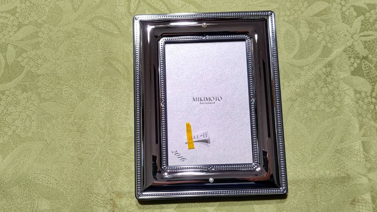 - 1121-11 ミキモト 2016年限定廃番 フォトフレーム(外枠17.7×14内枠11.7×7.7㎝)金属製 ダブルパールの枠取り 内枠にリュバン上下に真珠