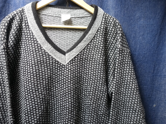 - USA アメリカ 古着 TOP SECRET Vネック 総柄 アクリル ニット セーター M / 89 古着卸