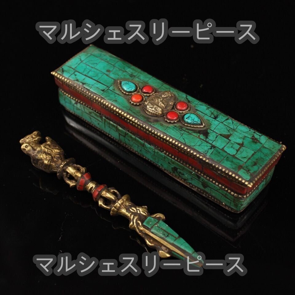 - 純銅八股金剛杵 チベット 純手造り馬頭金剛杵セット 空行母法器 降金剛闖金剛杵 密教器 純銅 赤松緑松 真鍮 金剛杵 宝杵 置物