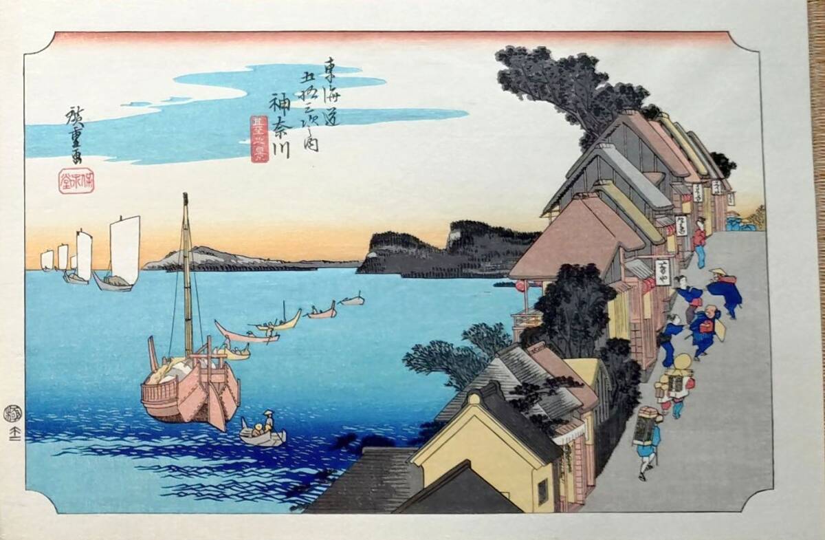 - f24120103〇手摺彩色木版画 東海道五十三次 川崎宿 保永堂版 悠々洞版 広重 複刻昭和年代 状態摺共特上〇和本古書古文書