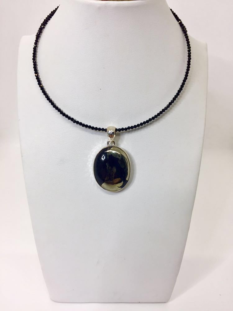 - 【新品】ブラックパイライトネックレス*天然石*パワーストーン*ブラックスピネル*形状記憶ワイヤー*シンプル