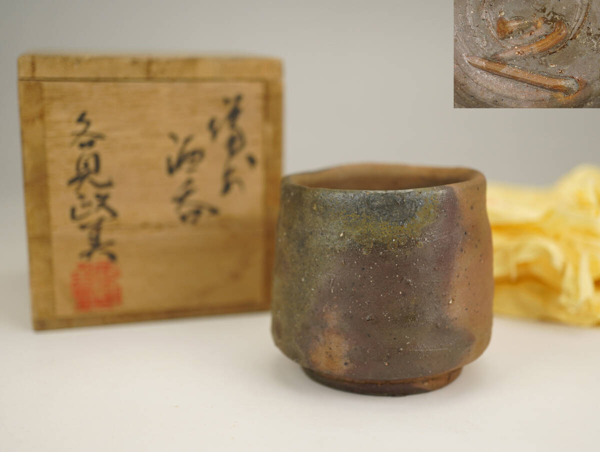 > 鳳】各見政美 作 備前焼 酒呑 共箱 2411-18検:茶道具 煎茶 常滑焼 九谷 薩摩 華道具 置物 皿 急須 朱泥