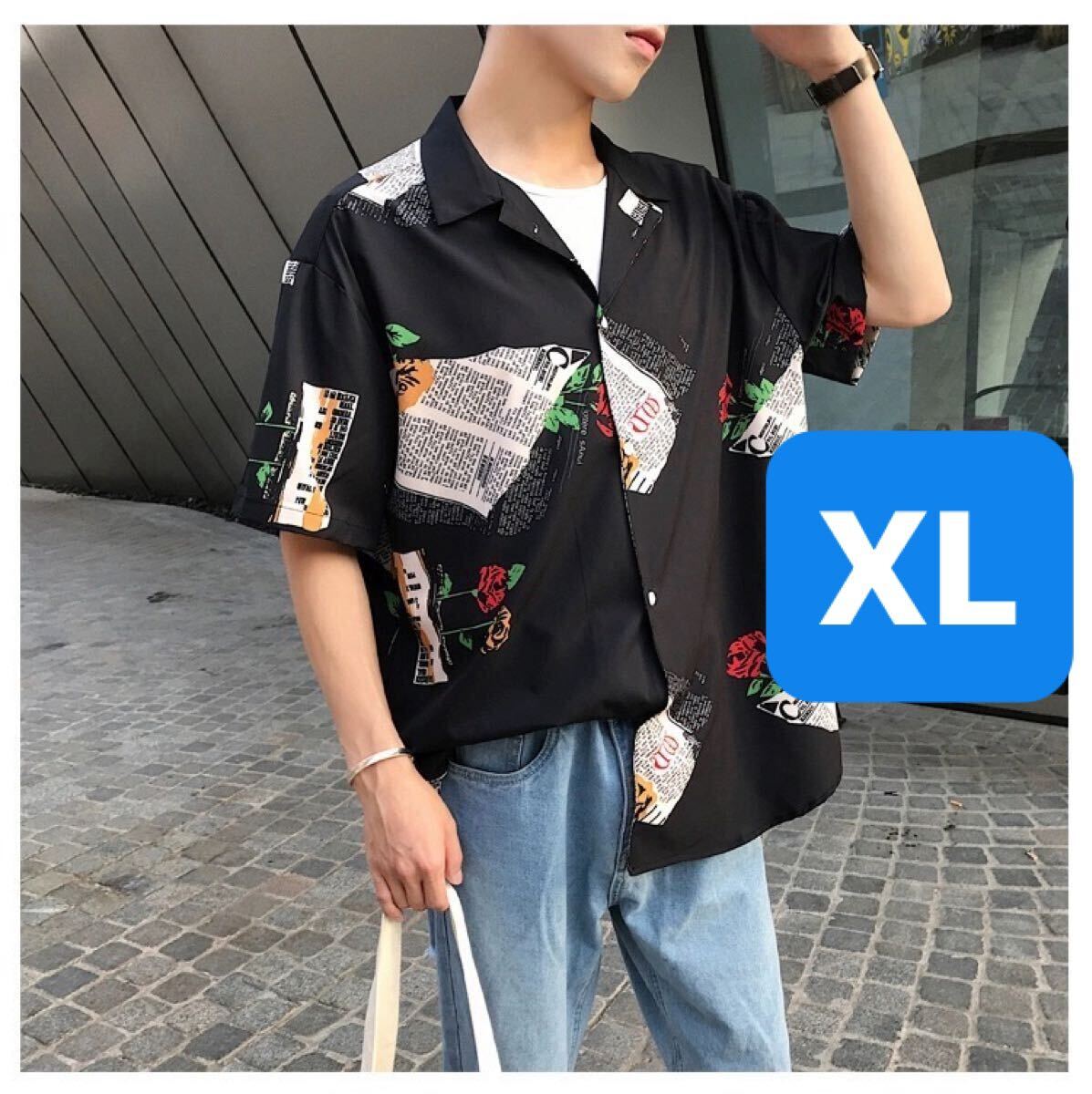- シャツ 古着風 ビッグシルエット アウター トップス トレンド ストリート 渋谷 パルコ ヒカリエ 下北沢 今っぽ ユニセックス 黒 LXL