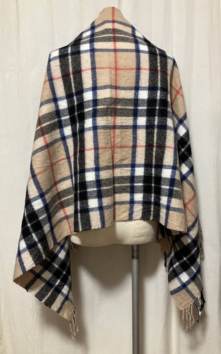 - John Scott for SHIPS ジョンスコット/シップス ひざ掛け ブランケット ベージュ系(ノバ)チェック 中古品 穴、しわあり スコットランド製