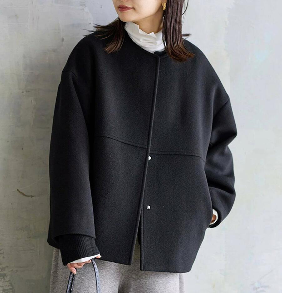 > 秋冬美品*上質 ラシャコート レディース 秋冬 コート 長袖 アウター カジュアル 暖かい 通勤 着回し チェスターコート ジャケット*ブラック
