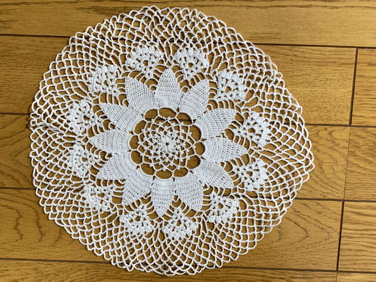 > 送料込 ドイリー パイナップル レース編み 28㎝ 円形 テーブルセンター 植物 花 白 ハンドメイド レトロ アンティーク
