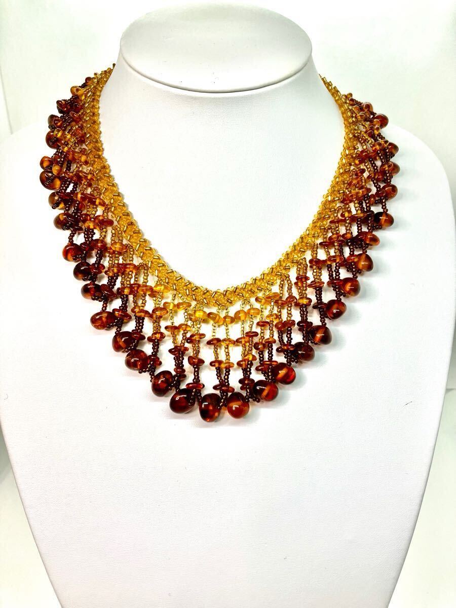 - 【新品】天然琥珀ネックレス*コハク*こはく*アンバー*デラネックレス*ダンス*パーティー*天然琥珀ビーズネックレス*一点もの