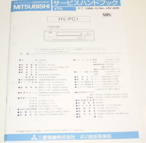 - 三菱 HV-PC1 サービスハンドブック ( サービスマニュアル ) 古本