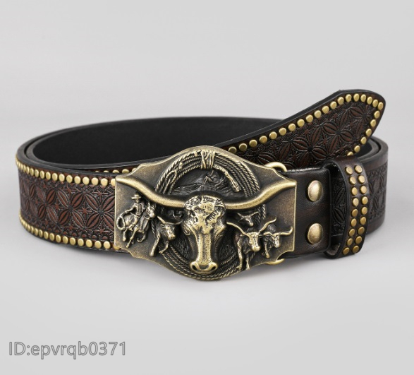 > ベルト◆新品 メンズ レザーベルト ピンバックル式 金属バックル 柄物 革ベルト 紳士用 長さ調整可能 ポンチ付き /茶色