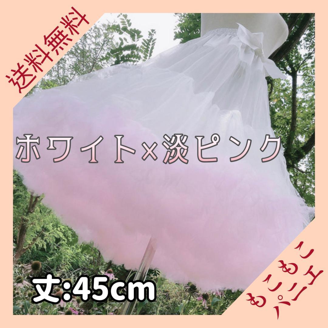 - z90 ボリュームパニエ ホワイト×ピンク 45cm コスプレ ロリータ