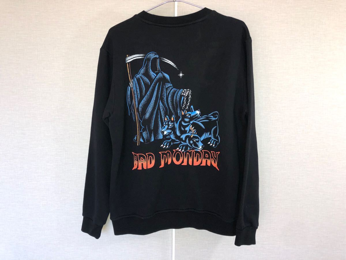 - BAD MONDAY スエット 長袖 サイズM ブラック バッドマンデートレーナーTATTOOデザイン死神ケルベロスドーベルマンハードコアメタル古着即決