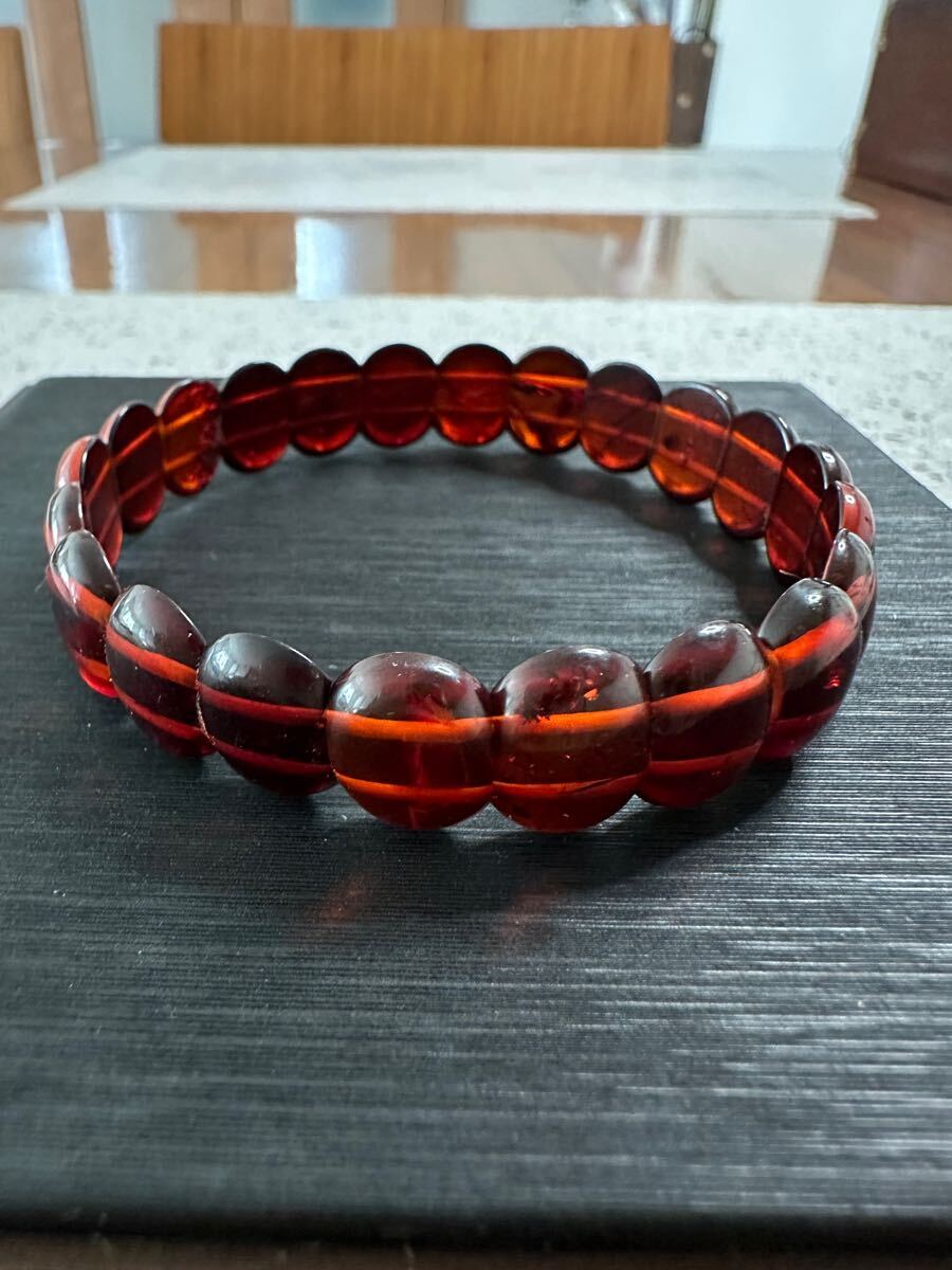 - V-960天然 レッドアンバー 本琥珀 血珀ブレスレット バングル 天然保証