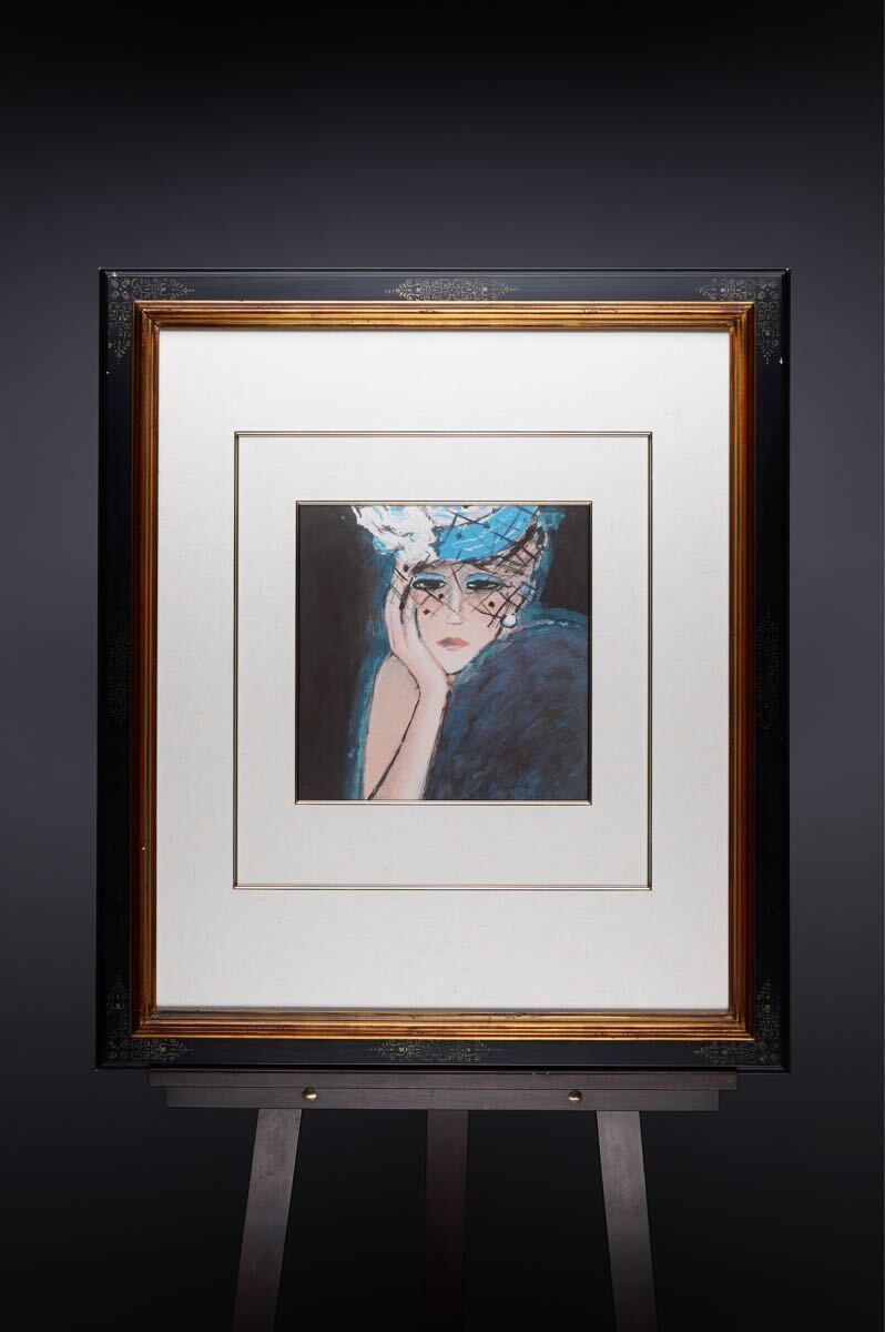 - 真作 カシニョール Jean-Pierre Cassigneul「ヴェール」リトグラフ 画寸(29cmx30cm) 高級額縁付き エレガントな女性のポートレート