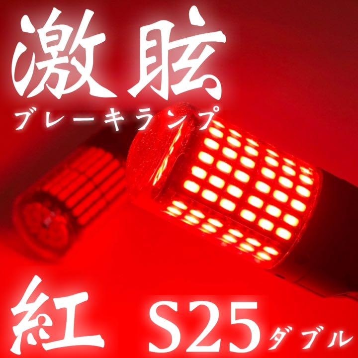 > 激眩ブレーキランプ レッド 2個セット S25 LED ダブル 180°段違い 警告灯点灯防止キャンセラー内蔵 車検対応