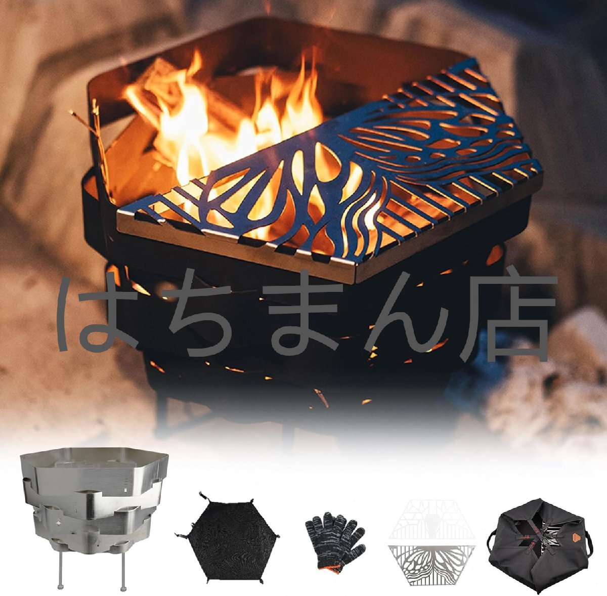 - 焚火台 幅40/52cm 焚き火台 キャンプ コンロ ステンレス製 コンパクト 大型 薪ストーブ バーベキュー 収納バッグ付き 銀(ステンレス鋼) L