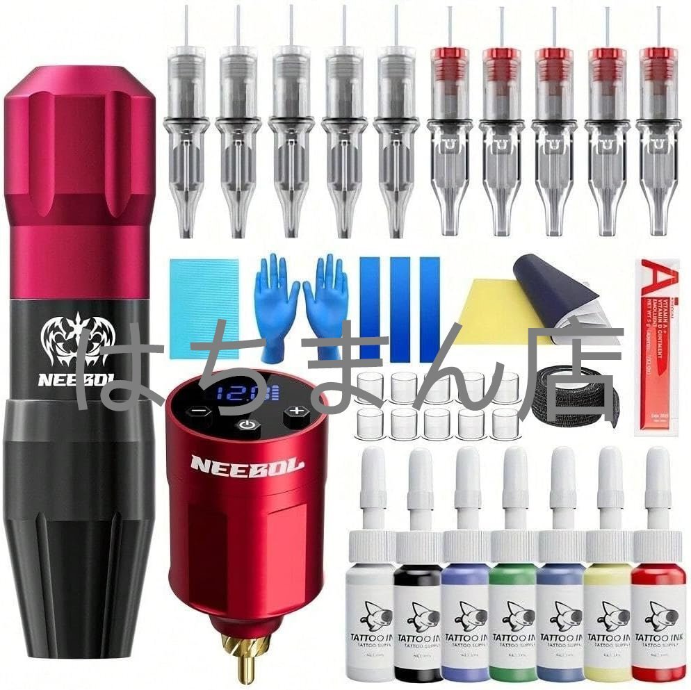 - タトゥーマシン、ワイヤレスタトゥーマシン 、タトゥーマシンセット タトゥー転写クリーム 転写紙 カラー希釈剤 10色のタトゥー顔料付き