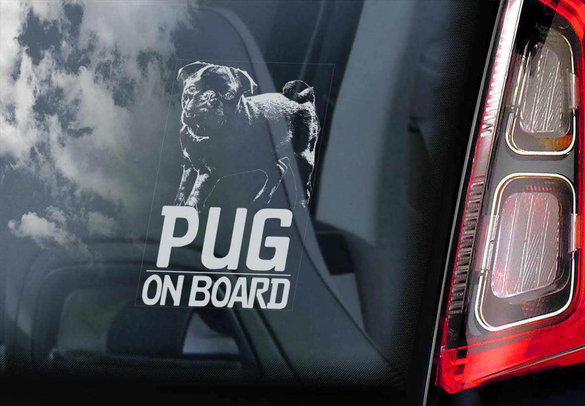 > ◆送料無料【黒パグ / ブラック・パグ】外張り カーステッカー 160×100mm 外貼り カー ステッカー シール DOG ON BOAD@ D2 3265
