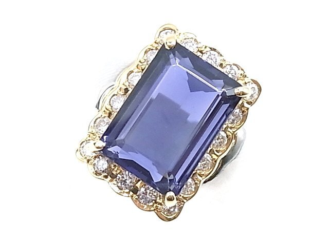 - g20047 Pt900/K18YG アイオライト4.62ct D0.45ct リング USED 美品 12.3g #12 ミニ鑑別書付