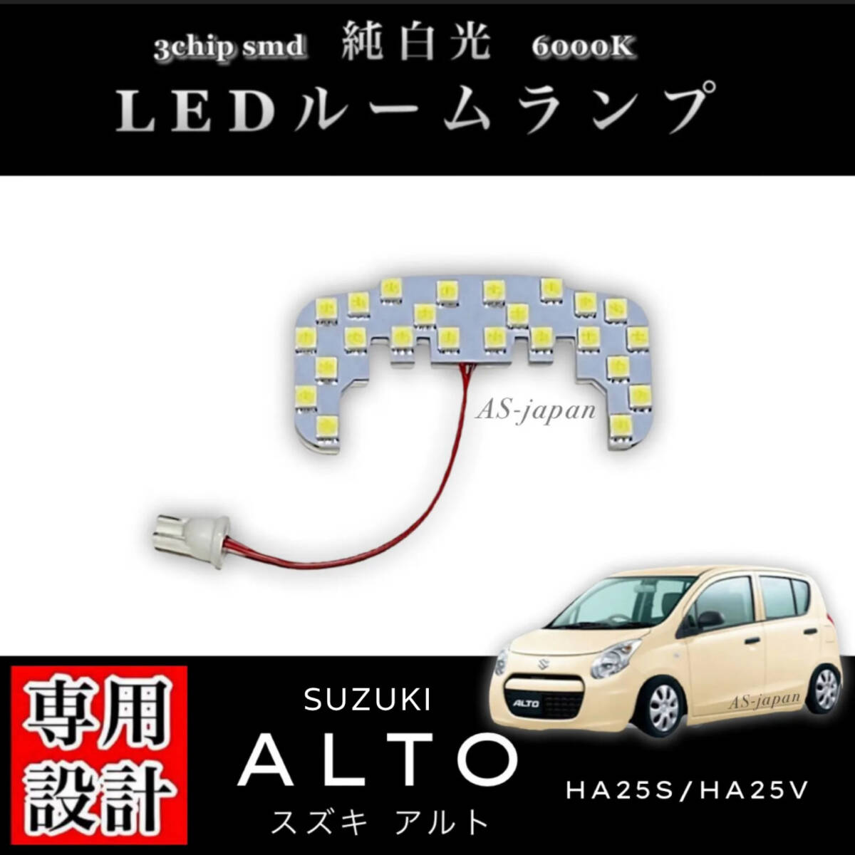 > スズキ アルト HA25S / HA25V 専用設計 純白光 LED ルームランプ 高輝度 3chip SMD SUZUKI ALTO HA25 5ナンバー 乗用 4ナンバー バン