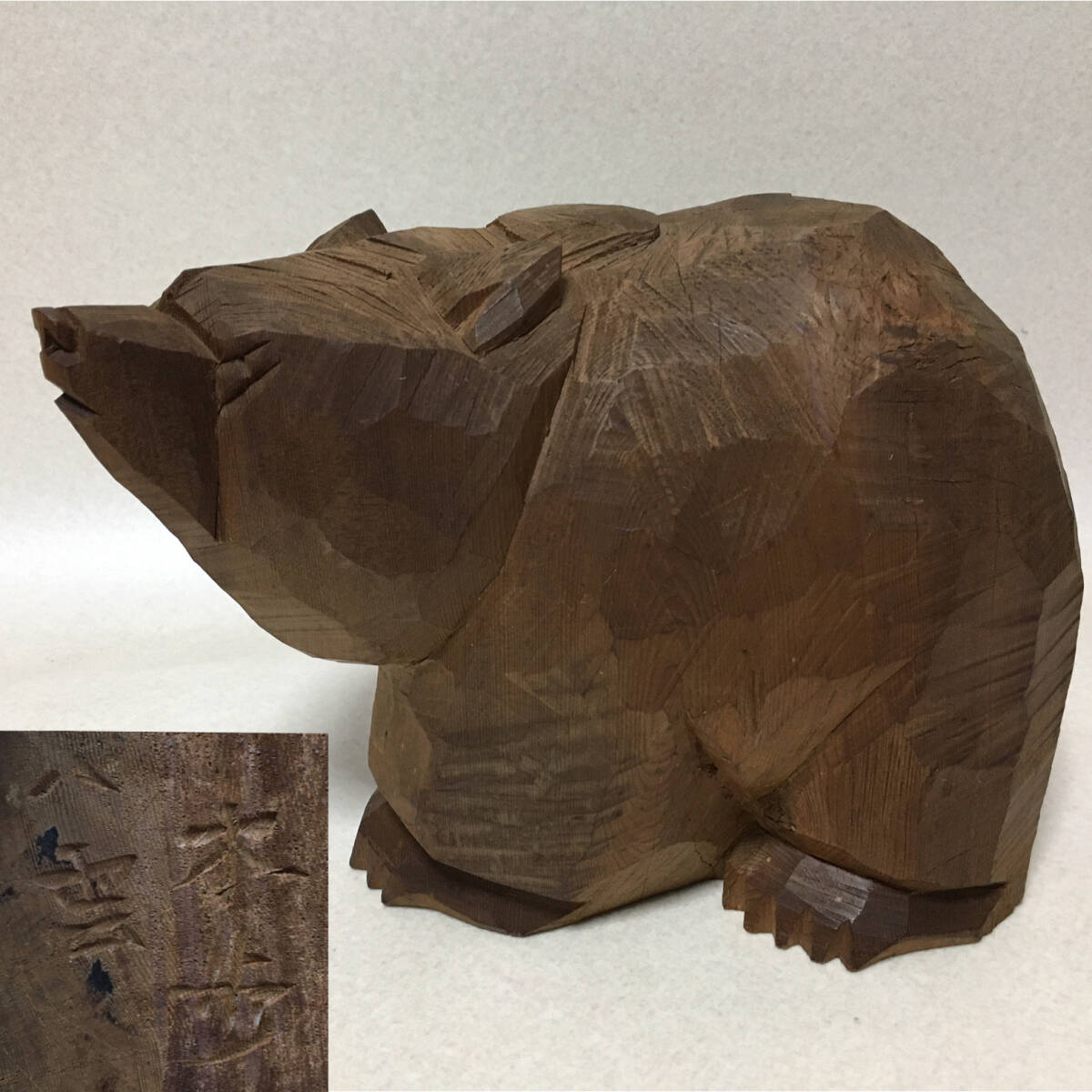 - 【B627】 木歩 引間二郎作 アイヌ彫刻 八雲 1996年 木彫 熊 高さ19cm 横30cm 木彫り熊 彫刻 置物 北海道伝統工芸