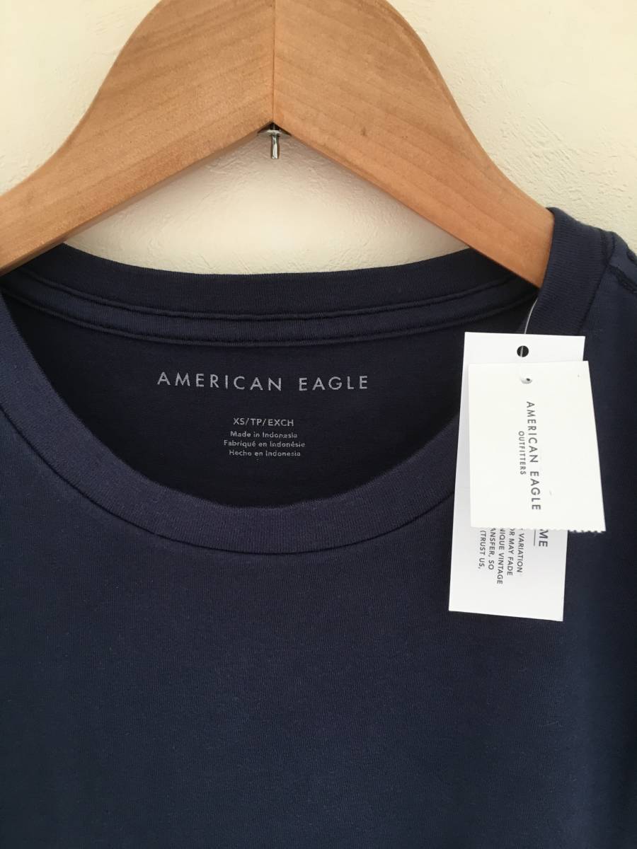- セール! 正規品 本物 新品 アメリカンイーグル クルーネック Tシャツ AMERICAN EAGLE 最強カラー ネイビー 知的で 上品な 紺色 XS ( S