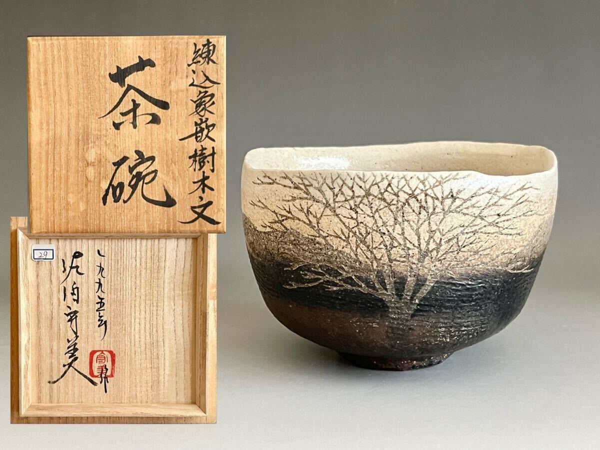 - 佐伯守美 練込 象嵌 樹木文 茶碗 1995年作 茶道具
