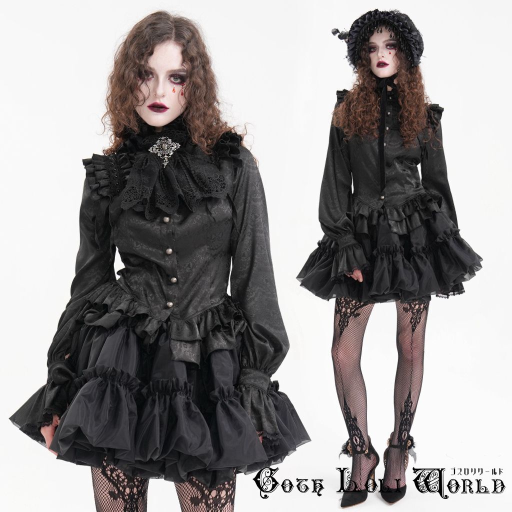 - SHT122-L フリルヘムキャンディースリーブスタンドカラーブラウス 黒色 ゴスロリワールド ゴシック パンク ロック ロリィタ ビジュアル系