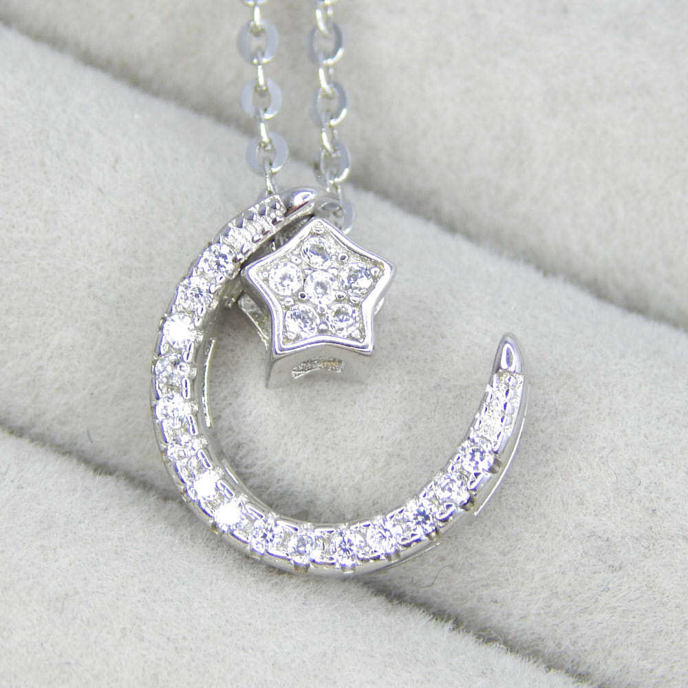 - 残り1点★新品★送料無料 星月 21連CZダイヤモンドネックレス レディースアクセサリー プラチナ仕上 シルバー925刻印 限定 ジルコニア