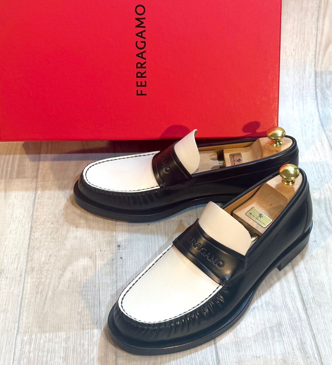 - 【未使用】FERRAGAMO フェラガモ◆24.5cm 6.5 EE◆モカシンローファー 本革 革靴 ビジネスシューズ ドレスシューズ 靴 ITALY製 バイカラー