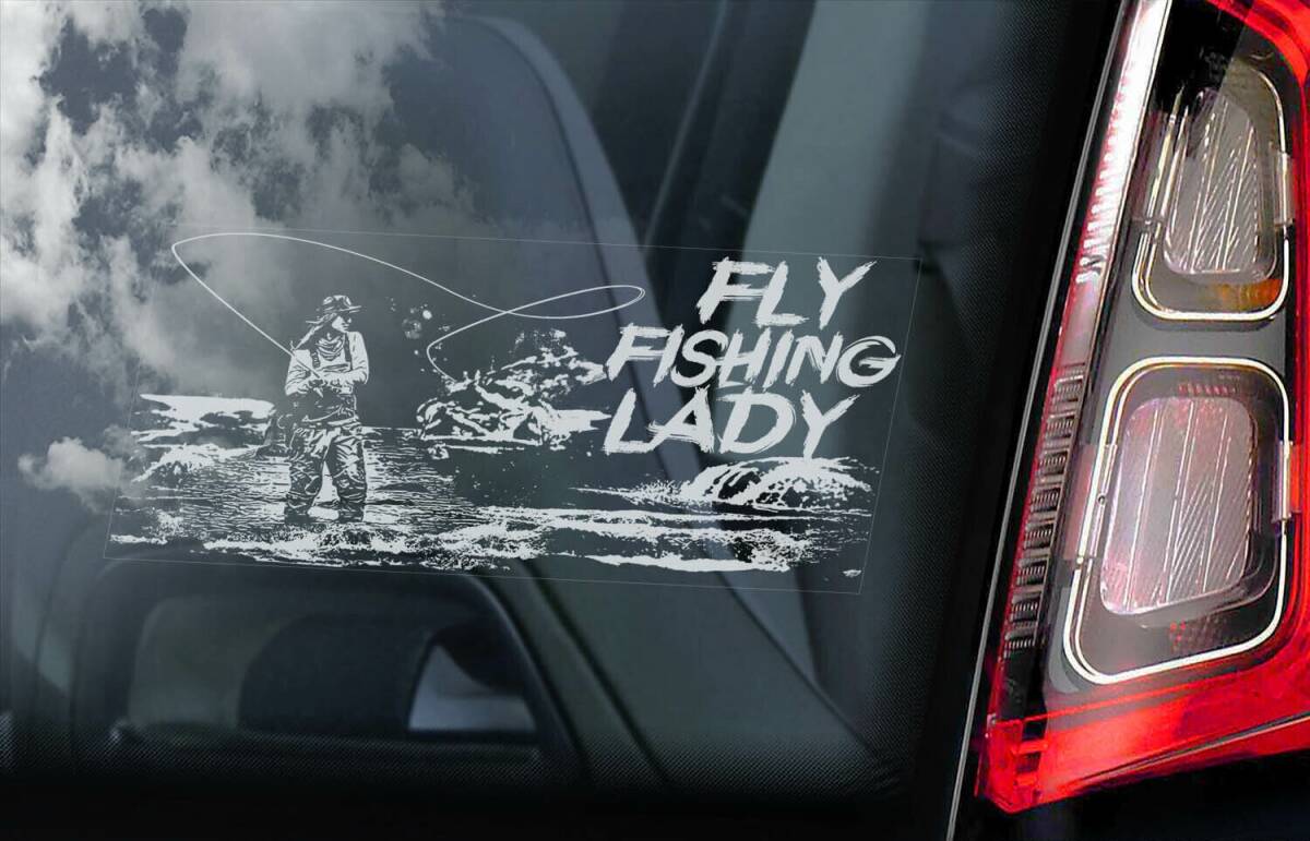 > ◆フライフィッシングレディ フライフィッシング フライ 釣り 川釣り@外張り カーステッカー シール22×10cm@カー ステッカー@B2 3894