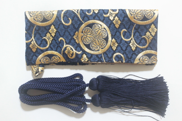 - 短刀用 葵紋 豪華 金襴袋 袋全長55cm×8㎝「白鞘全長:38cm~40cmに適合」+房紐 家紋 三つ葉葵紋 徳川 高級 刀袋 刀剣 日本刀 ☆新品