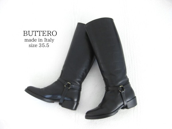 - ☆美品☆イタリア製☆BUTTEROブッテロ☆ロングブーツ☆黒☆レザー☆35.5☆乗馬ブーツ☆即決☆