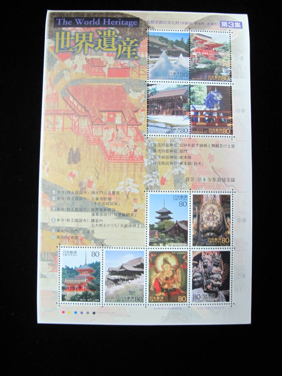 - 記念切手シート 世界遺産 第3集 古都京都の文化財 80円切手 ①