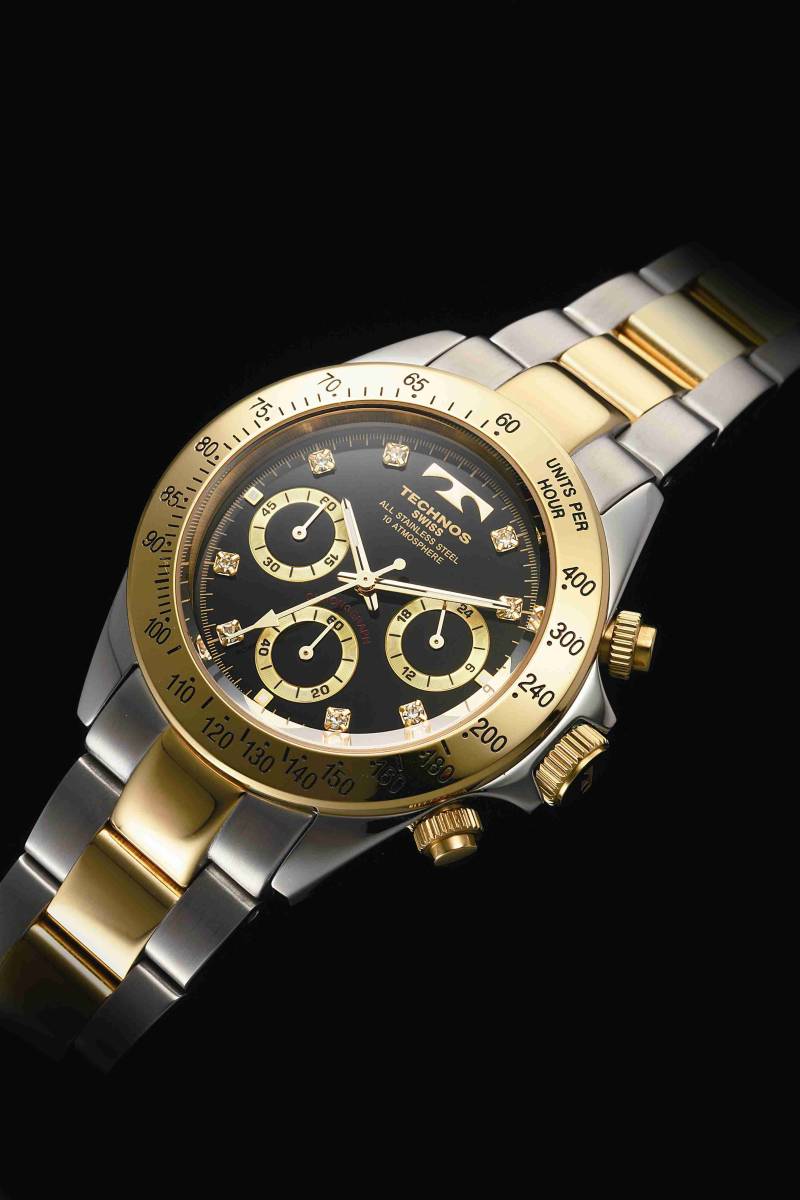 > 【アウトレット品#未使用】TECHNOS テクノス カレンダー クロノグラフ メンズ腕時計 3針アナログクォーツ 男性腕時計 10気圧防水 黒