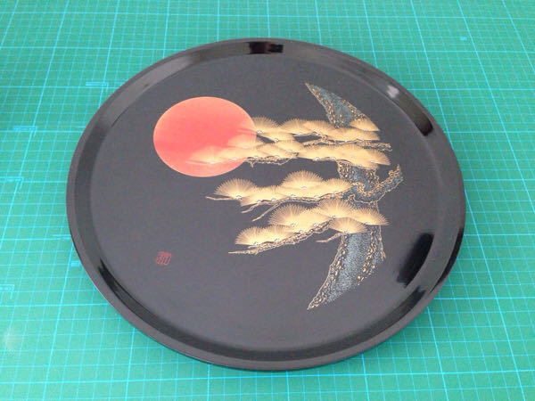 - 尺丸盆(30センチ丸盆)■日之出松★漆黒塗り金蒔絵■茶道具★