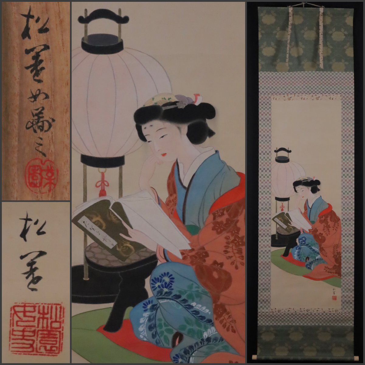 - 【模写】吉】11608 上村松園 美人図 宝船 共箱 二重箱 竹内栖鳳師事 女流画家 大和絵 風俗画 茶掛け 茶道具 掛軸 掛け軸 骨董品